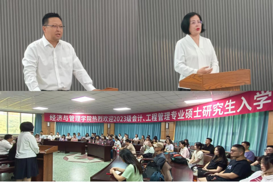 王蓉副院长代表学院向2023级非全日制硕士研究生表示热烈欢迎和亲切问候。她向与会学生详细介绍了学院的发展历程、师资队伍、育人理念、人才培养特色、优秀校友资源等。她强调研究生要拥有自学能力、自省能力和合作能力,三者相辅相成,缺一不可,并向非全日制学生提出了三点期望。第一、要求同学们务必树立学习第一的理念,处理好学习与工作的关系,把压力变成动力,把困难看作挑战,挖掘潜力、发散思维、深耕专业,多出实践成果。第二、希望同学们谨记“强学力行、喻理求真”的校训,不仅要锤炼过硬的专业本领,认真研读前沿论文,拓展眼界视野,还要将理论与实践紧密结合,提升运用专业知识解决实际问题的能力,为实现自己的初心和梦想而不懈努力。第三、嘱咐非全研究生要制定清晰的学术目标,做好生涯规划,持续与导师、同学保持良好沟通,培养良好学习习惯,努力完成科研任务的同时也要时刻心怀感恩,虚心求教。最后她祝愿2023级研究生能永葆青春热忱、探索无限未来,成为勇敢逐梦、驰而不息的经管人!